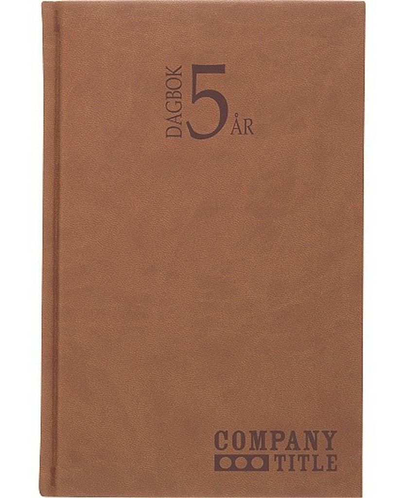 En dag per sida som sträcker sig över fem år, årsneutral. För dagboksnoteringar, att notera viktiga händelser i och för att kunna följa vädrets skiftningar från år till år. Innehåller namnsdagsregister. Cognac, inbunden konstläder. Format 142 x 205 mm.