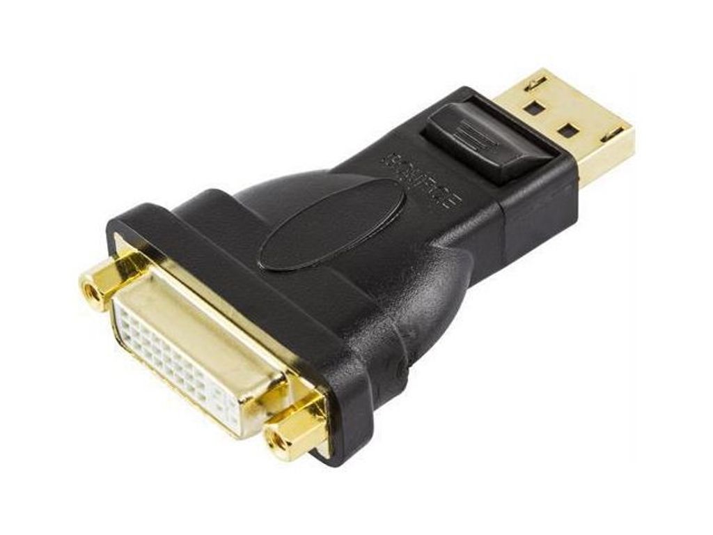 Beskrivning av Adapter DELTACO DP-DVI svart DisplayPort till DVI-D Single Link adapter, 20-pin hane - 24+5-pin hona, svart. - Chipset: LT8611A - 4.96 Gb/s bandbredd - Stödjer Full HD - 1920x1080 i 60Hz - Nettovikt: 0,03 kg