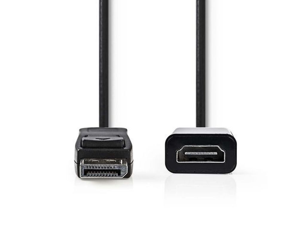 Den här adapterkabeln ifrån NEDIS konverterar DisplayPort-signaler till HDMI-signaler. Perfekt för att ansluta DisplayPort-enheter till din dator. Du kan ansluta en HDMI-kabel till adapterkabeln. - Kabelns utformning: Rund - Yttre material: PVC - Ledarmaterial: Koppar - Plätering: Nickel - Max. upplösning: 1920x1080 - Anslutning 1: HDMI Hona - Anslutning 2: DisplayPort hane - Kabeltyp: DisplayPort 1.1 - AWG-värde: 32 / 28 - Sladdlängd: 0.2 m