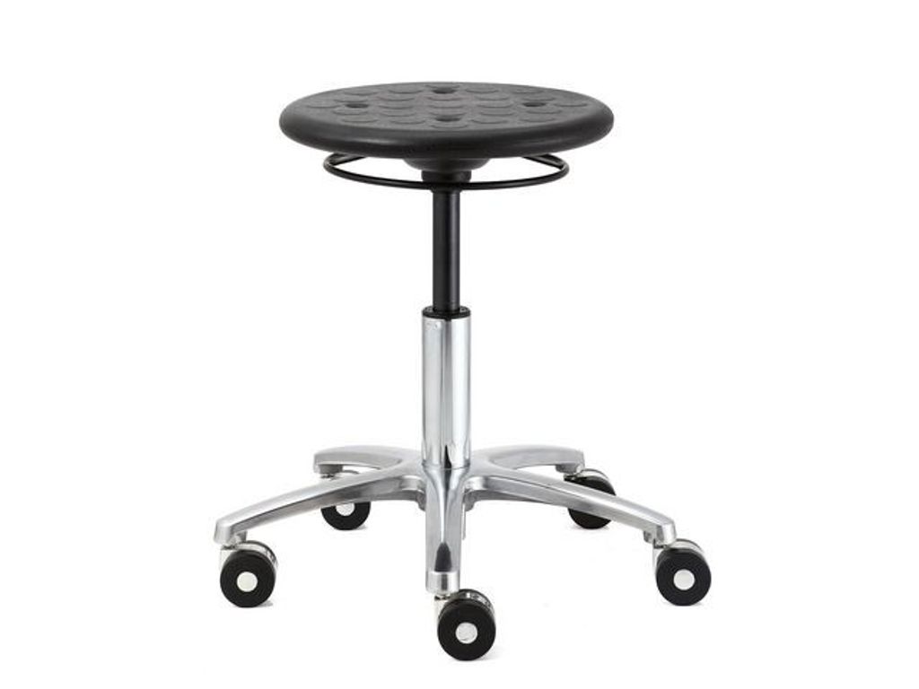 Ergonomisk och smidig åkstol. Bekväm och ergonomisk åkstol för att undvika förslitningar på ryggar etc. Lättskött höj- och sänkbar sits. Sitthöjd 36,5-49,5 cm. Lätt och tålig åkstol som passar till många olika miljöer. Kraftig 5-armad aluminium bas.Sitsens ytterskikt är tillverkat av Polyuretan, för att få en stark och behaglig yta.