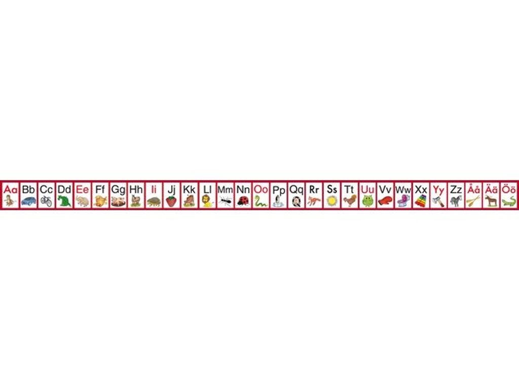 Alfabetsremsan är ett praktiskt hjälpmedel till eleverna att ha på skolbänken som stöd när de ska lära sig alfabetet. Även vokaler och konsonanter är markerade med olika färger på bokstäverna. Varje elev kan få sin egen alfabetsremsa! Format 28 x 480 mm. - Av FSC märkt papper