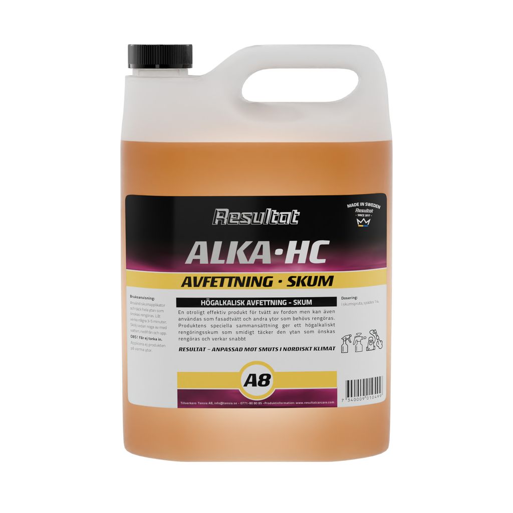 Resultats skummande avfettningsmedel A8 är en otroligt effektiv och imponerande produkt som räcker länge. Produktens speciella sammansättning ger ett högalkaliskt rengöringsskum som smidigt täcker den ytan som önskas tvättas - inom ett ögonblick har du täckt större fordon och sedan verkar medlet på bara någon minut!
