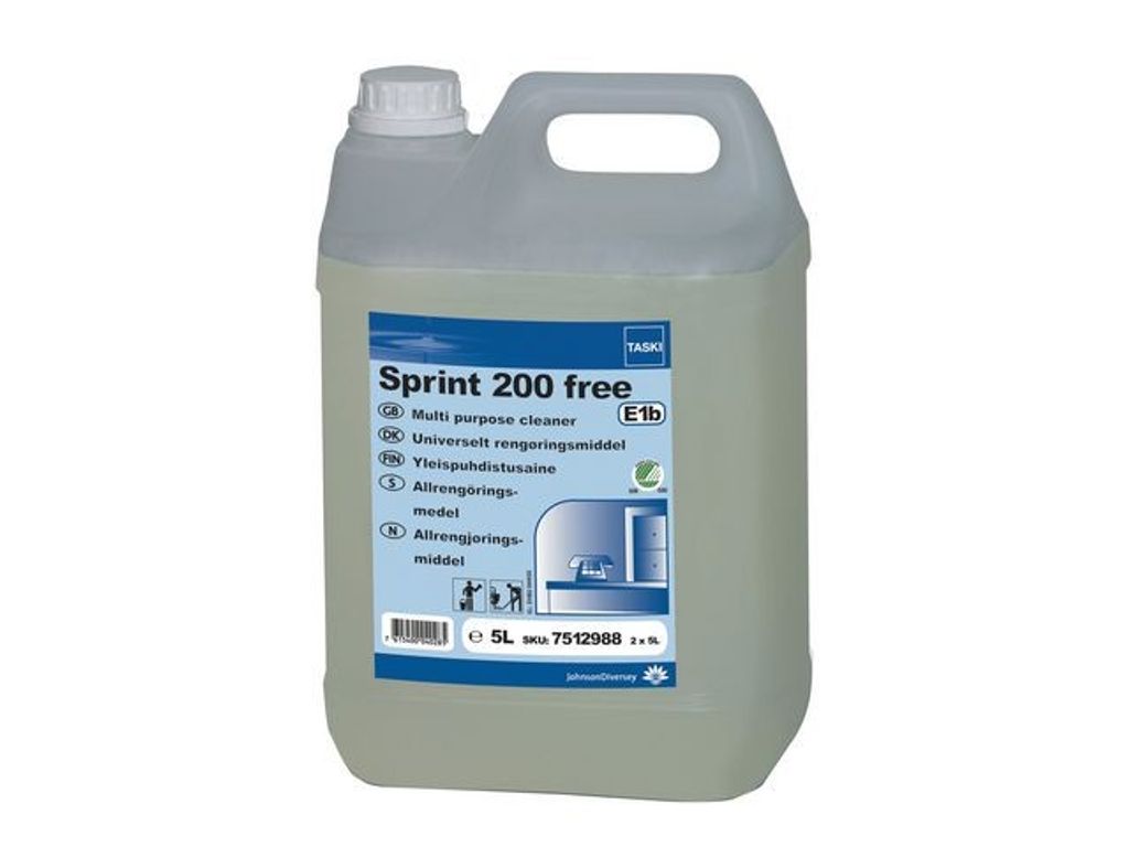 Få ett skinande rent resultat på alla ytor med Taski Sprint 200 Free-universalrengöringsmedlet. Fräscha upp bänkskivor, hyllor och golv med Taski Sprint 200 Free-universalrengöringsmedlet. Det här rengöringsmedlet fungerar på alla ytor, inklusive glas och rostfritt stål, så att du kan rengöra hela lokalen utan att byta produkter. Taski Sprint 200 Free-universalrengöringsmedel har ingen tillsatt färg eller doft, så det gör inga fläckar på blekare ytor och lämnar inte kvar någon lukt. - Användning på golv, bänkskivor, speglar och rostfritt stål - Den oparfymerade sammansättningen utan färgämnen lämnar inga fläckar eller doftrester - Det koncentrerade rengöringsmedel späds ut för prisvärd allrengöring - Miljöanpassade ingredienser är skonsammare mot miljön - Mått: 5 l
