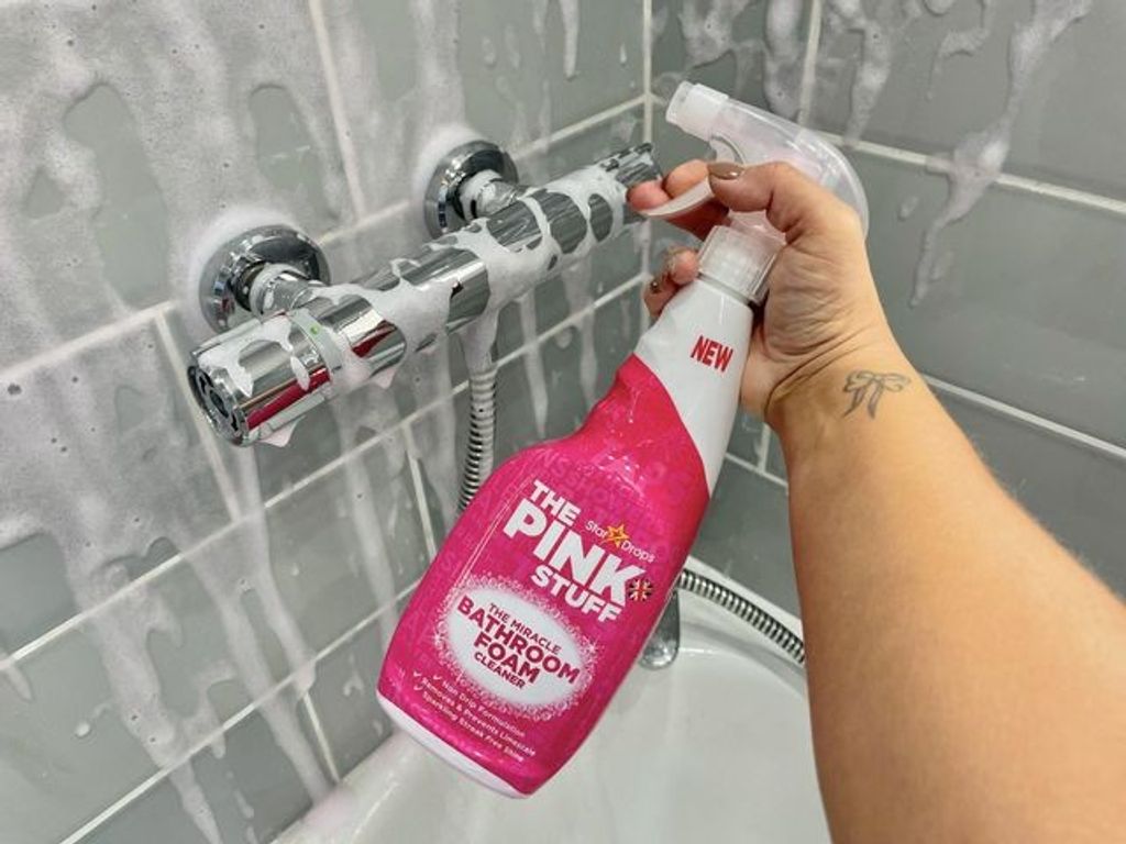 Mångsidigt rengöringsspray anpassat för hårda ytor. Sprayen är tuff mot fläckar och avlägsnar lätt både fett och smuts och lämnar varje yta blank och ren. The Pink Stuff Miracle Bathroom Foam Cleaner är en mångsidig och droppfri badrumsrengöring i skumform. Skummet sprayas på ytan som ska rengöras och fäster lätt på smuts, fett och tvålrester för att sedan penetrera på djupet och lämna ytan blank och ren. Tar även bort och motverkar kalkavlagringar. Alla produkter från The Pink Stuff tas fram för att vara så effektiva som möjligt men samtidigt ta hänsyn till miljön och hållbarhet. Produkterna innehåller 99% naturliga och biologiskt nedbrytbara ingredienser och är ej testade på djur. The Pink Stuff är rengöringsprodukterna som har tagit världen och sociala medier med storm – alla produkter utvecklas med hjälp av feedback från faktiska användare av varumärket, vilket resulterat i en mängd effektiva och lättanvända städprodukter som har skapat en hype på Instagram och TikTok - pH-värde: 2,5-3,5 - Lukt: Parfymerad - Utseende: Rosa vätska