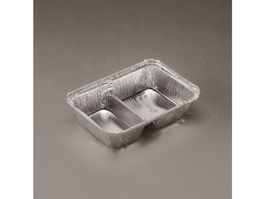 Perfekt för take-away! Portionera maten tydligt och rymligt i dessa tvåfacksformar - Aluminiumform med två fack - Rymmer 920ml.