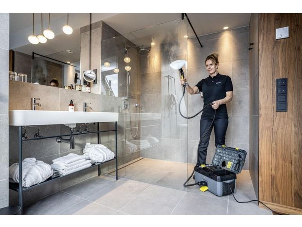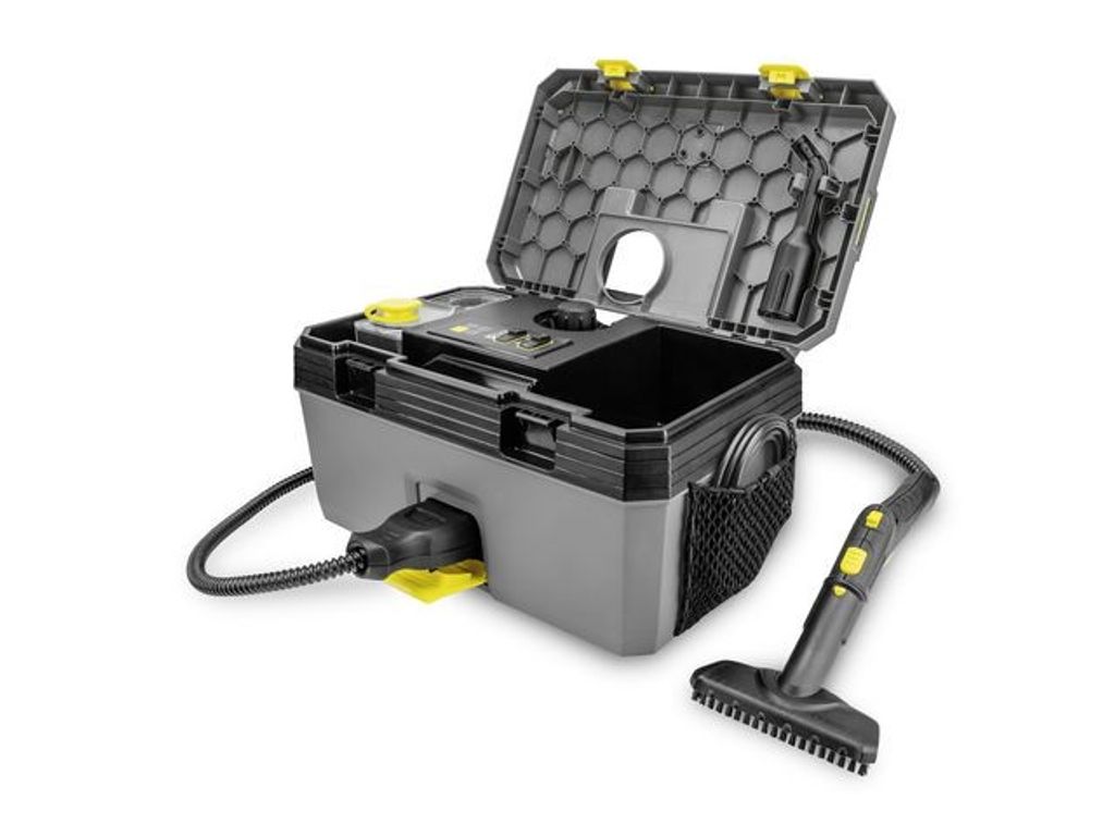 Kompakt och enkel ångtvätt från Kärcher med en unik allt-i-ett box design. Tack vare den unika designen med en allt-i-ett box är den väldigt kompakt, robust och hållbar. Den är också välutrustad med tillbehör och mycket enkel att använda. Ångtvätten imponerar med sitt höga rengöringsresultat, sitt pris/prestanda förhållande och sin maximala effektivitet. Kan enkelt transporteras med en hand tack vare sin låga vikt (7.5 kg). Redo att användas på bara 3 minuter och med 4 bars ångtryck har den mer än tillräcklig prestanda för djuprengöring och sanering utan att behöva använda kemikalier. Bänkar, kranar, avlopp, kakelplattor, ugnar och mycket mer kan rengöras ned i minsta detalj helt oavsett graden av nedsmutsning. Vid särskilt hårt ingrodd sittande smuts kan man använda VapoHydro funktionen och med hetvatten effektivt skölja av och avlägsna hårt sittande beläggning eller fett. Vattenbehållaren kan avlägsas och fyllas på när som helst och var som helst. Tillbehör som ångslangen, handmunstycket, point jet munstycket, power munstycket, rundbosten, flatborsten, ångskrapan och mikrofiberöverdraget ingår alla i leveransen och får plats i behållaren. Golvmunstycke kan väljas till. - Kraftfull rengöringskombination av ånga och hetvatten - Utrymmesbesparande - smart förvaring av tillbehör - Låg vikt - endast 7,5kg - Kabellängd: 5m - Tankvolym: 1,5 liter - Mått (L×B×H): 460×298×265mm