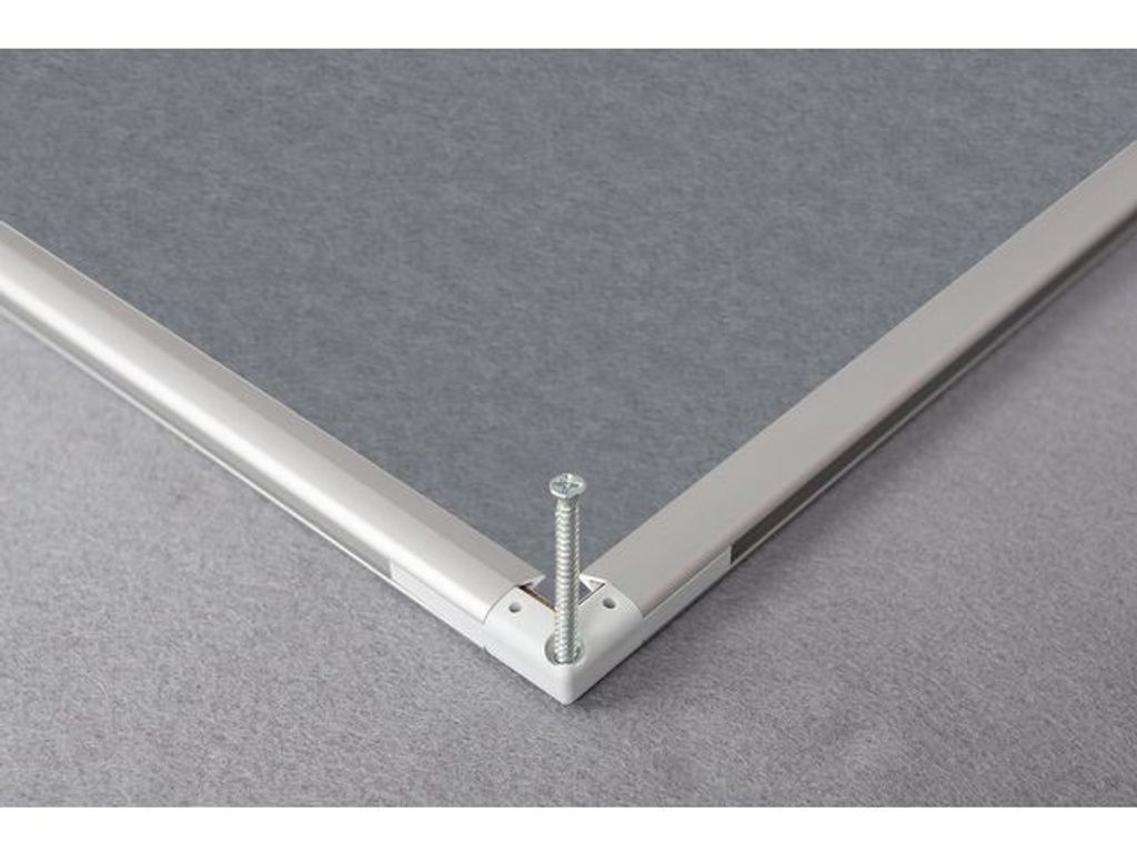 Anslagstavla för att hänga viktiga papper eller för att markera dokument eller andra urklipp. Tavlan kan monteras vertikalt eller horisontellt. Ram i anodiserad aluminium - Monteringssats ingår - Tavla: Filtad yta - Ram: Ram i anodiserad aluminium - Kanter: Ljusgrå plast - Färg: Grå - Mått: 120x90 cm