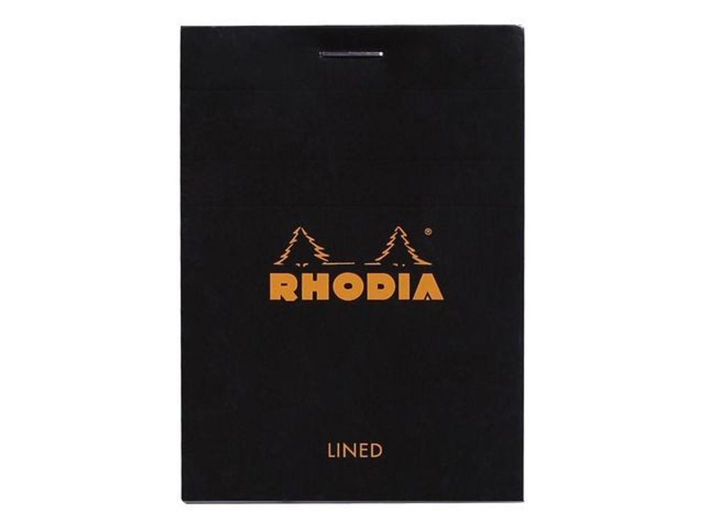 Anteckningsblock av märket Rhodia med linjerade ark och 80g papper. Anteckningsblock av märket Rhodia med linjerade ark och 80g papper. Rhodia tillverkas i Frankrike av vellum papper och har en baksida av kartong för extra skrivstöd, och en skyddande framsida av grövre papper. Varje ark är mikroperforerat för enkel avrivning. - Mått: 74x105mm - Format: A7 - Rhodia nr 11 - Svart fram och baksida