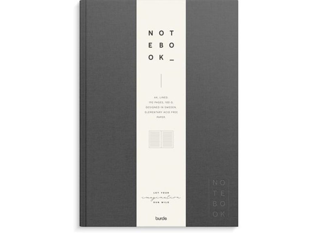 Ant.bok BURDE A4 textil linj mörkgrå