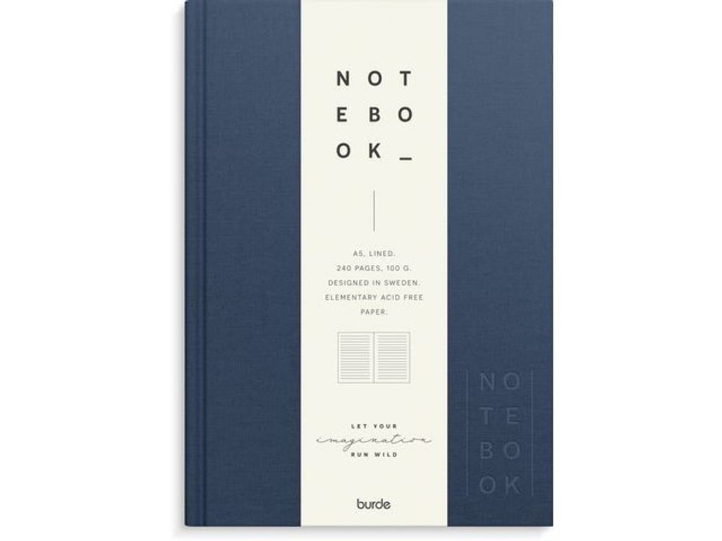 Beskrivning av Ant.bok BURDE A5 textil linj mörkblå