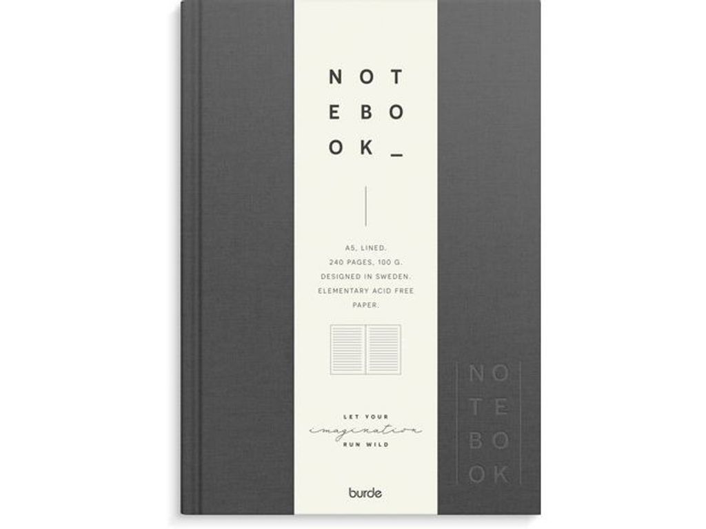 Beskrivning av Ant.bok BURDE A5 textil linj mörkgrå
