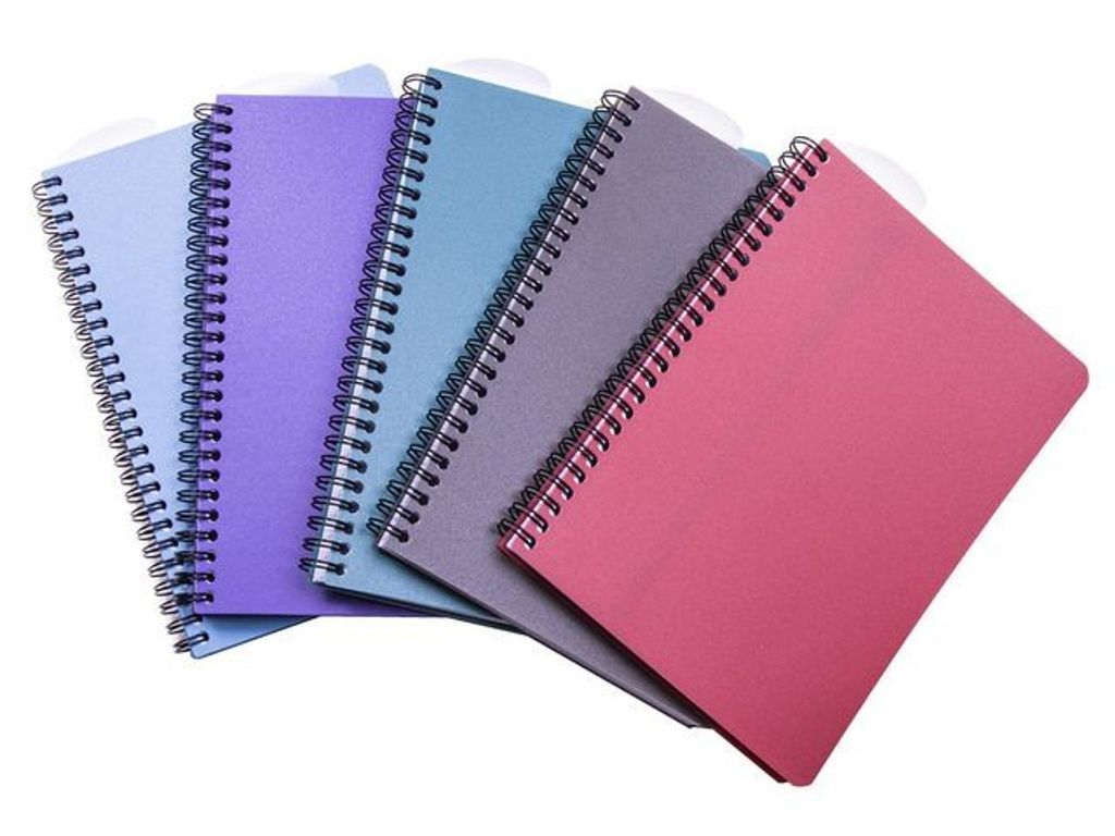 Linjerat anteckningsblock med omslag av PP. Spiralbundet anteckningsblock i A5-format för alla dina anteckningar. Flyttbar avdelare/linjal. Papper av hög kvalitet. Anteckningsblocket finns i flera snygga färger. - Med dubbelspiral - Storlek: A5 - Antal blad: 90 - Papperskvalitet: 90g - Material omslag: PP - Linjerat - FSC-märkt - Färg: Sorterade färger