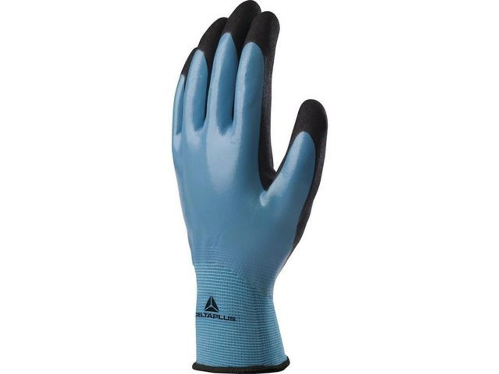 DELTAPLUS V636BL är en funktionell arbetshandske med nitril som är både flexibel och mycket bekväm att bära. Handsken är tillverkad av 100% polyamid. Både handflata och fingerspetsar är belagda med ett lager nitril som gör handsken oljeavvisande och ger ett bra grepp. Handsken är därför mycket bra lämpad i oljiga miljöer. - Godkänd enligt standard: EN388 - Silikonfri - Oljeresistent - Material: Polyamid - Material ytskikt: Nitril, nitrilskum - Typ av ytskikt: Helbelagd - Gauge värde: 10 - Färg: Blå, Svart - Storlek: S7