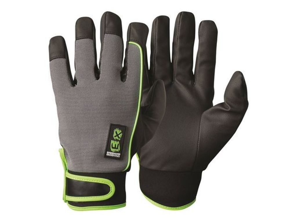 Arbetshandskar i syntetiskt skinn, lämpliga för lätt till medeltungt arbete inom montering, transport, underhåll, industri, anläggning och lager. Handskar i MicroSkin Shield-material i handflatan och ovanhand i spandex. Med kardborreknäppning som ger handskarna smidighet, bra passform och utmärkt greppförmåga. Kan maskintvättas och dropptorkas. - CE-certifierade - Godkänd enligt: EN 420:2003 + A1:2009, EN 388:2003, EN 388:2016+A1:2018 - Material i innerhand: MicroSkin Shield - Material på ovanhand: spandex/polyester - Fodertyp: ofodrad - Grepp: torrgrepp, våtgrepp - Längd: 22-24 cm - Färg: svart, grå - Storlek: 11
