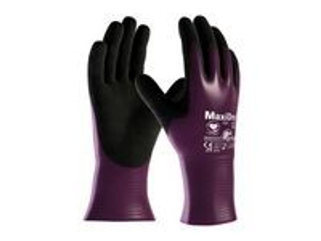 Arbetshandske MaxiDry 56-426 är en oljeresistent men ändå extra tunn, flexibel, smidig och bekväm montagehandske. MaxDry 56-426 är en tät, slitstark och hudvänlig handske med perfekt passform, tillverkad i nylon och doppad i nitrilskum. Passar för våta/ oljiga miljöer samt mot mikroorganismer. - CE-certifierad - Godkänd enligt: EN 374-5:2016, EN388:2016+A1:2018, 4111A, EN 374-1:2016+A1: 2018, Typ C, OekoTex 100, Skin Health Alliance. - Material: Nylon, doppad i nitrilskum - Färg: Lila, Svart - Längd: 26 cm - Storlek: 11