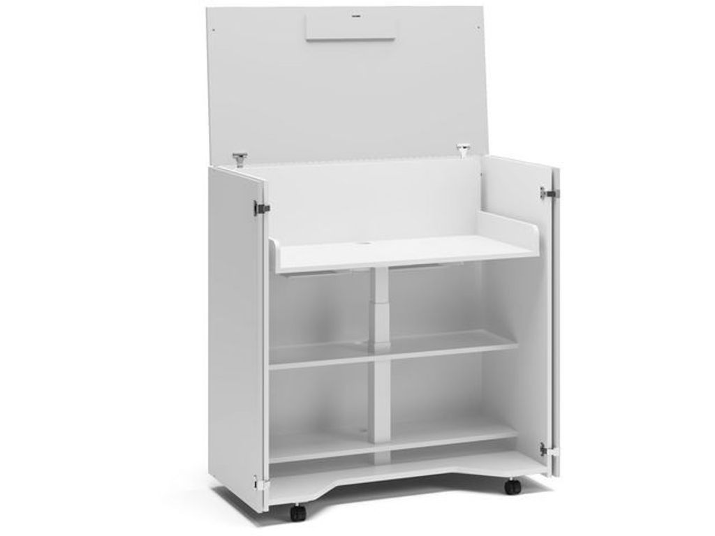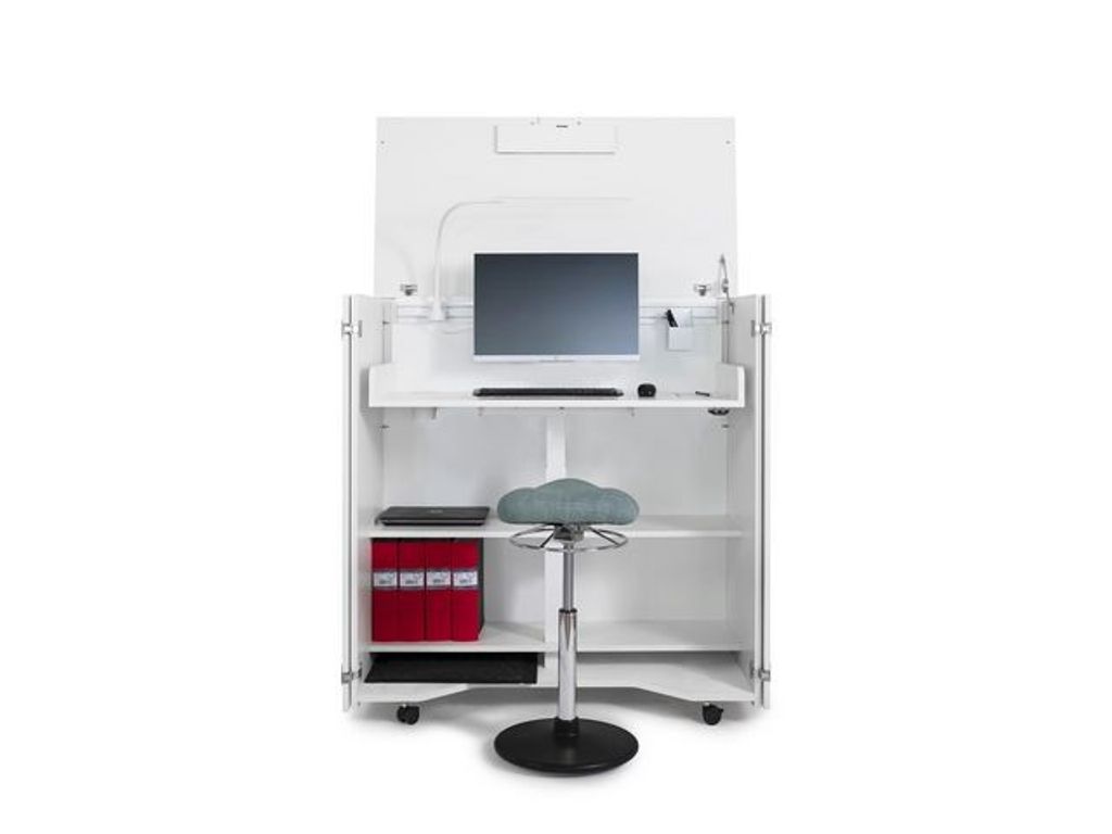Cubic är en snygg och funktionell kontorsmöbel både för kontoret och hemmet. På endast 19 sekunder förvandlas Cubic till en komplett ergonomisk arbetsplats, stilren möbel på en kubik. Cubic erbjuder rätt ergonomi med ett höj- och sänkbart arbetsbord komplett med laddstation, plats för förvaring och lätt att flytta. Kabelgenomföring samt kabelränna ingår i standardutförande. Flera tillbehör finns att köpa till Cubic tex funktionslist, monitorfäste, LED lampa, pennkopp, systemhylla, grenuttag, Q1 laddare, lås till dörrarna, balanspallen Point samt underarmstöd. Vitlaminat stomme/ front och lock i ljusgrå laminat. - Material: Vitlaminat stomme/front och lock i ljusgrå laminat. - Mått (HxBxD): 1310x1230x630 mm - Arbetsyta 1060*520 mm - Höjdjustering 670-1230 mm - Slaglängd 560 mm - Svängradie dörr 600 mm - Lyftkraft 80 kg