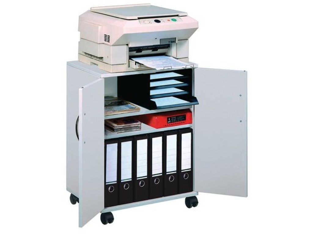 Mobil kontorshurts med dubbeldörrar som är praktisk och användbar på kontor, i konferensrum eller för mobila arbetsplatser för förvaring av skrivare och andra kontorstillbehör. - Två fasta hyllor och två justerbara hyllor liksom skåpet är tillverkade av 16mm slitstarka träskivor - Varje hylla har en maxbelastning på 30 kg - 4 st svängbara länkhjul, varav 2 st har broms - Lätt att förflytta och stabil när den är 'parkerad' - Levereras i platt paket med monteringsanvisningar - Mått: 748 x 528 x 400 mm (HxBxD).