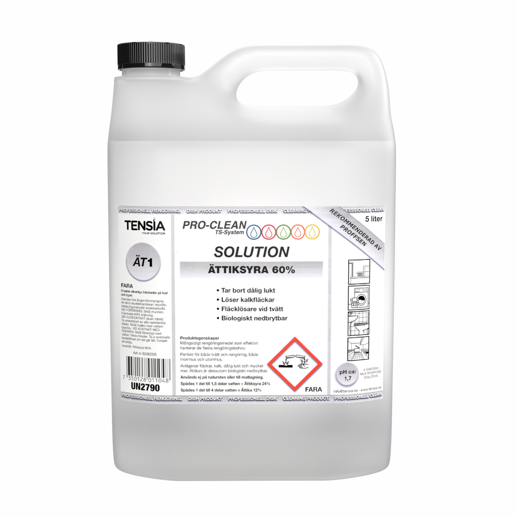 Pro-Cleans Ättiksyra 60% är en naturligt färglös vätska med massor av användningsområden.