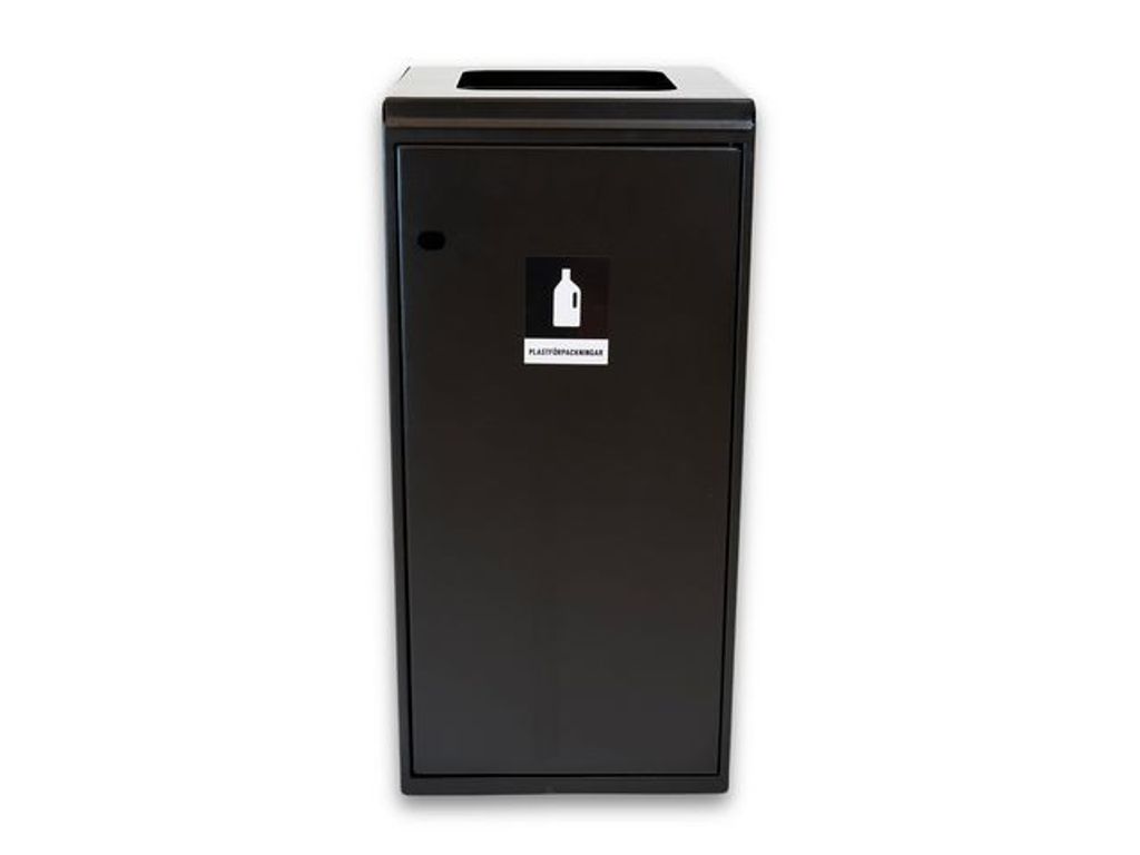 För sortering av exempelvis papper, metall och plastförpackningar. Stilrent och robust sorteringskärl, lock med kvladratiskt hål. Utrustad med justerbara tassar och dörrfront för ergonomiskt uttag av 125-literssäck. Funkar perfekt att kombinera flera kärl på rad för olika avfall. För inomhus- och utomhusbruk. Galvaniserad och pulverlackad för bästa funktion och finish. Tillverkad i Sverige av svenskt stål. Dekaler som medföljer: plastförpackningar, metall, kartong och pappersförpackningar. Tillval vid köp av 12 st valfri färg på kärlet (280 st olika nyaner). - L: 395 mm - B: 385 mm - H: 810 mm - Vikt: 17.5 kg - Material: Stål