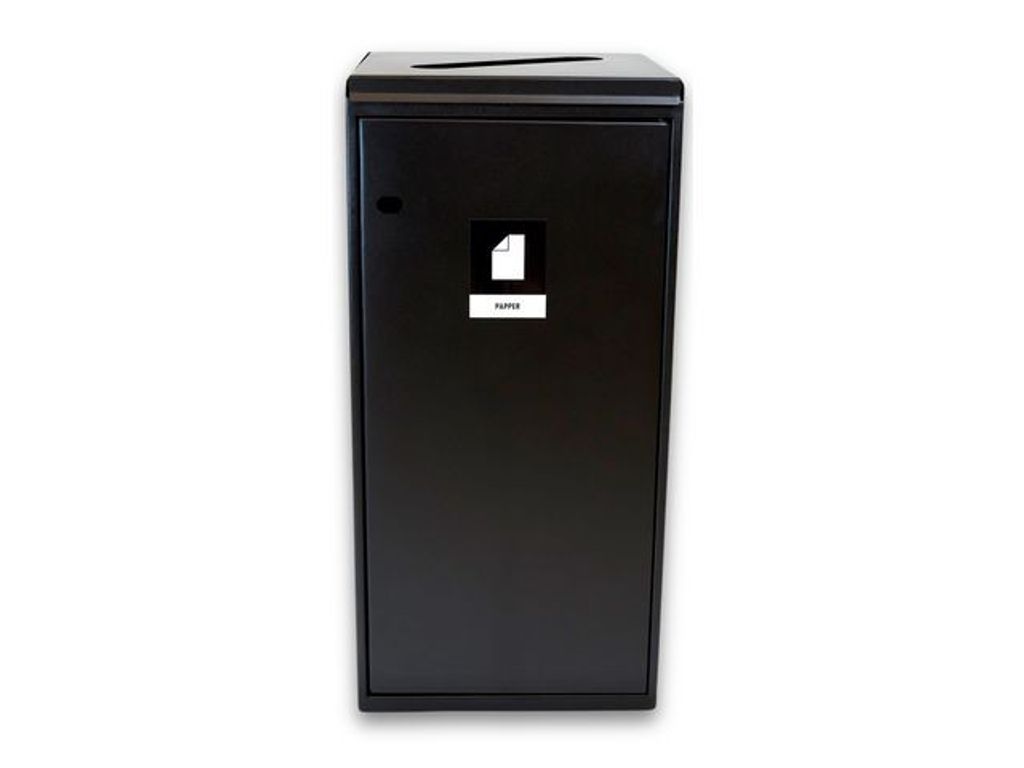 För sortering av exempelvis papper, tidningar eller kartong. Stilrent och robust sorteringskärl, lock med rektangulärt hål. Utrustad med justerbara tassar och dörrfront för ergonomiskt uttag av 125-literssäck. Funkar perfekt att kombinera flera kärl på rad för olika avfall. För inomhus- och utomhusbruk. Galvaniserad och pulverlackad för bästa funktion och finish. Tillverkad i Sverige av svenskt stål. Dekaler som medföljer: tidning och returpapper. Tillval vid köp av 12 st valfri färg på kärlet (280 st olika nyaner). - L: 395 mm - B: 385 mm - H: 810 mm - Vikt: 17.5 kg - Material: Stål