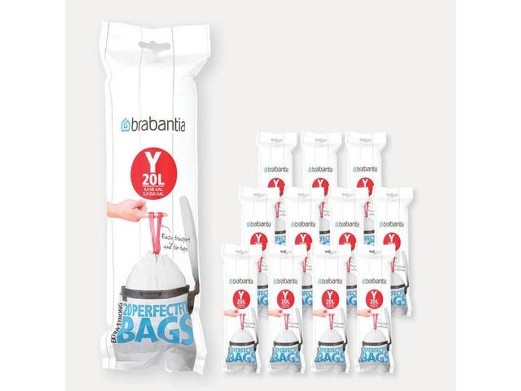 Beskrivning av Avfallspåse Y BRABANTIA 20L 20/rl Avfallspåse som passar till Brabantia pedalhinkar. Påsen rymmer 20 Liter och rullen innehåller 20 st påsar. Handtag som gör det lättare att bära och knyta