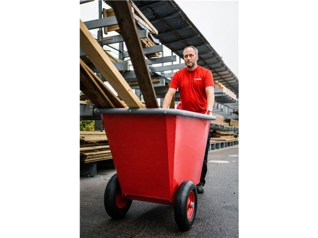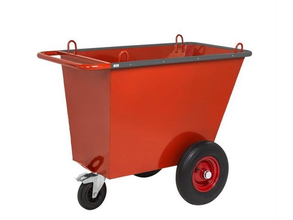 Beskrivning av Avfallsvagn 400L Pulverlackerad stor avfallsvagn i kraftig plåt. Med lyftöglor för säkra lyft. - Kapacitet: 400L - Storlek: 1310 x 720 x 1000mm (LxBxH) - Hjultyp: 2st 400mm luftgummihjul, 1st 200mm länk - Bromsad: Ja - Vagnens vikt: 70kg - CE märkt