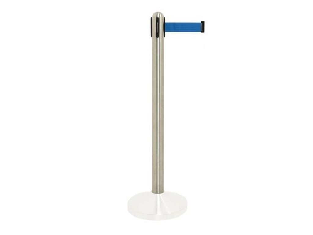 Hopfällbara avspärrningsstolpar med integrerad bandkassett som är bra när man önskar att avgränsa ett område, skapa effektiva kösystem och vägleda människor på god väg. Securit® Hopfällbar avspärrningsstolpe i borstat rostfritt stål för både inomhus- och utomhusbruk. Stolpen har en integrerade bandkassetten. Det blå nylonbandet är 210 cm och monteras enkelt på efterföljande stolpar. 4-vägs system. - Möjlighet att köpa A4 skylthållare och fästen för väggmontering. - Längd band: 210 cm - Färg band: Blå
