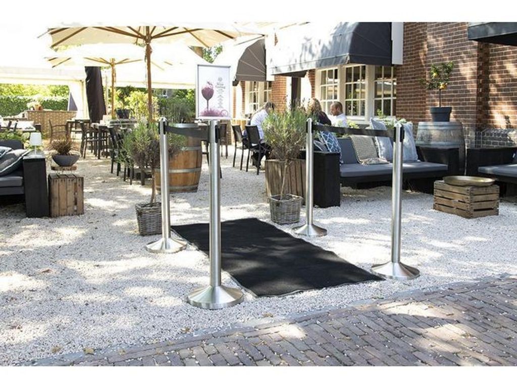 Hopfällbara avspärrningsstolpar med integrerad bandkassett som är bra när man önskar att avgränsa ett område, skapa effektiva kösystem och vägleda människor på god väg. Securit® Hopfällbar avspärrningsstolpe i borstat rostfritt stål för både inomhus- och utomhusbruk. Stolpen har en integrerade bandkassetten. Det svarta nylonbandet är 210 cm och monteras enkelt på efterföljande stolpar. 4-vägs system. - Möjlighet att köpa A4 skylthållare och fästen för väggmontering. - Längd band: 210 cm - Färg band: Svart