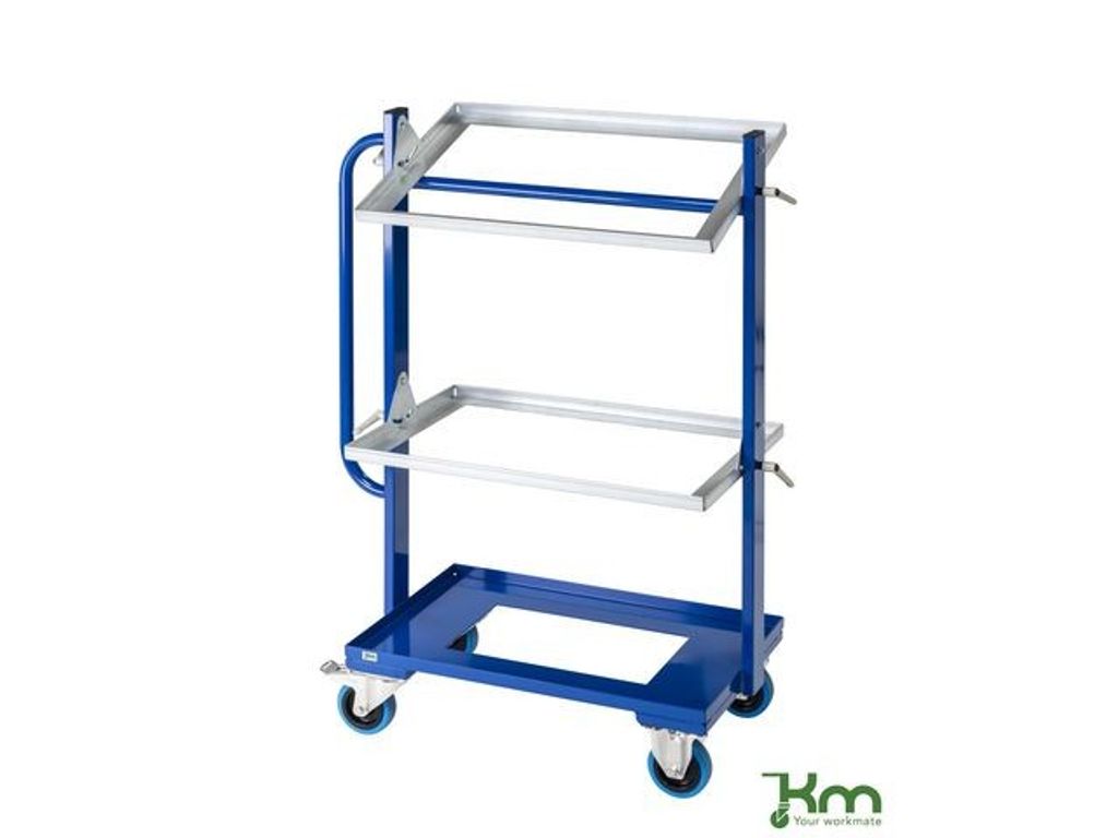 Flexibelt backställ som du kan anpassa utefter eget behov. Hyllor och gejder kan monteras rakt eller lutande. Anpassat för Europabackar med storlek 600x400mm. - Belastning: 150kg - Storlek: 800 x 415 x 1100mm - Färg: Blå - Vikt: 22kg - Bromsade hjul: Ja - Hjul: 2 fast 2 länk med broms
