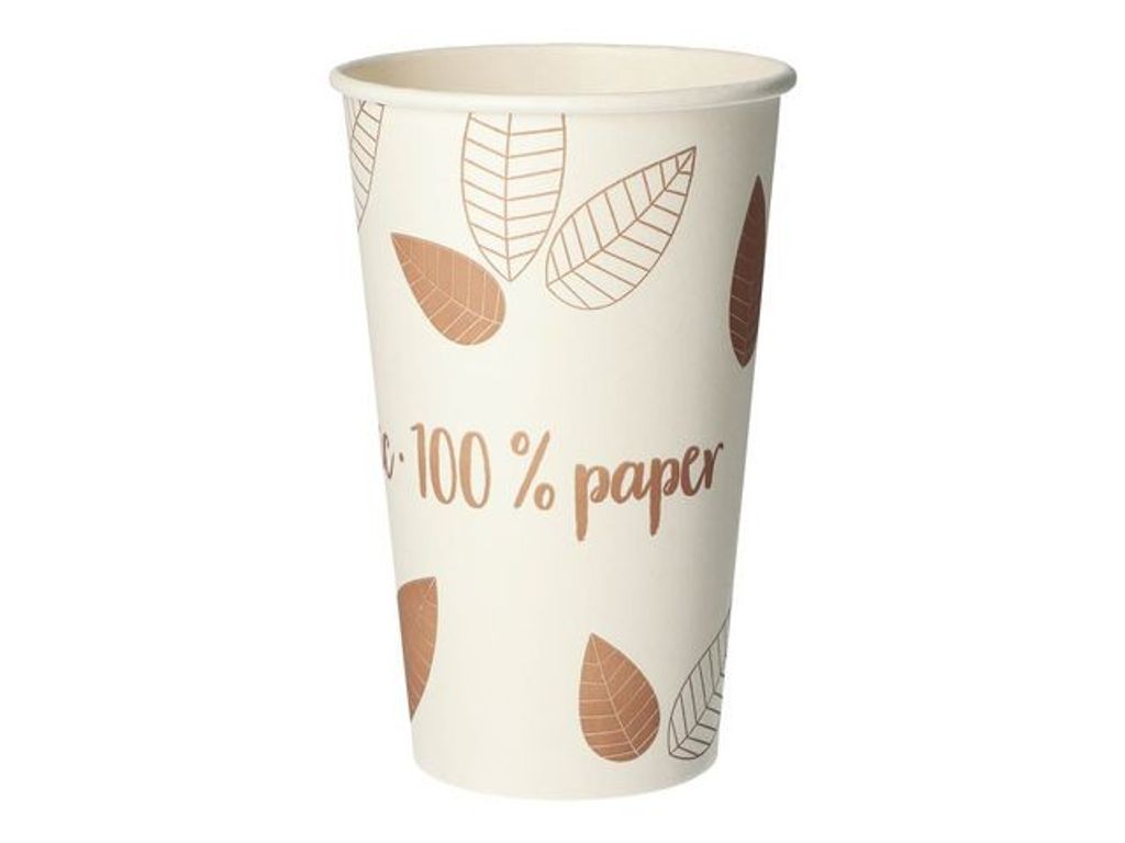 Slitstark och snällare mot miljön! Bägare gjord i papper och som tack vare sin speciella tillverkningsmetod är helt beläggningsfri och lämplig för alla varma drycker. Bägaren är helt biologiskt nedbrytbar och är 100% plastfri! - 80 st/FP - 48 cl - Plastfri