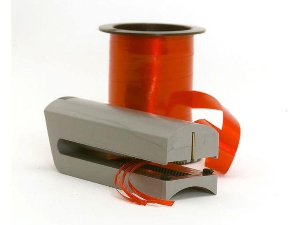 Beskrivning av Bandstrimlare till presentband Med hjälp av denna bandstrimlare kan man göra presentsnören spännande och unika. Verktyg för att strimla presentband.