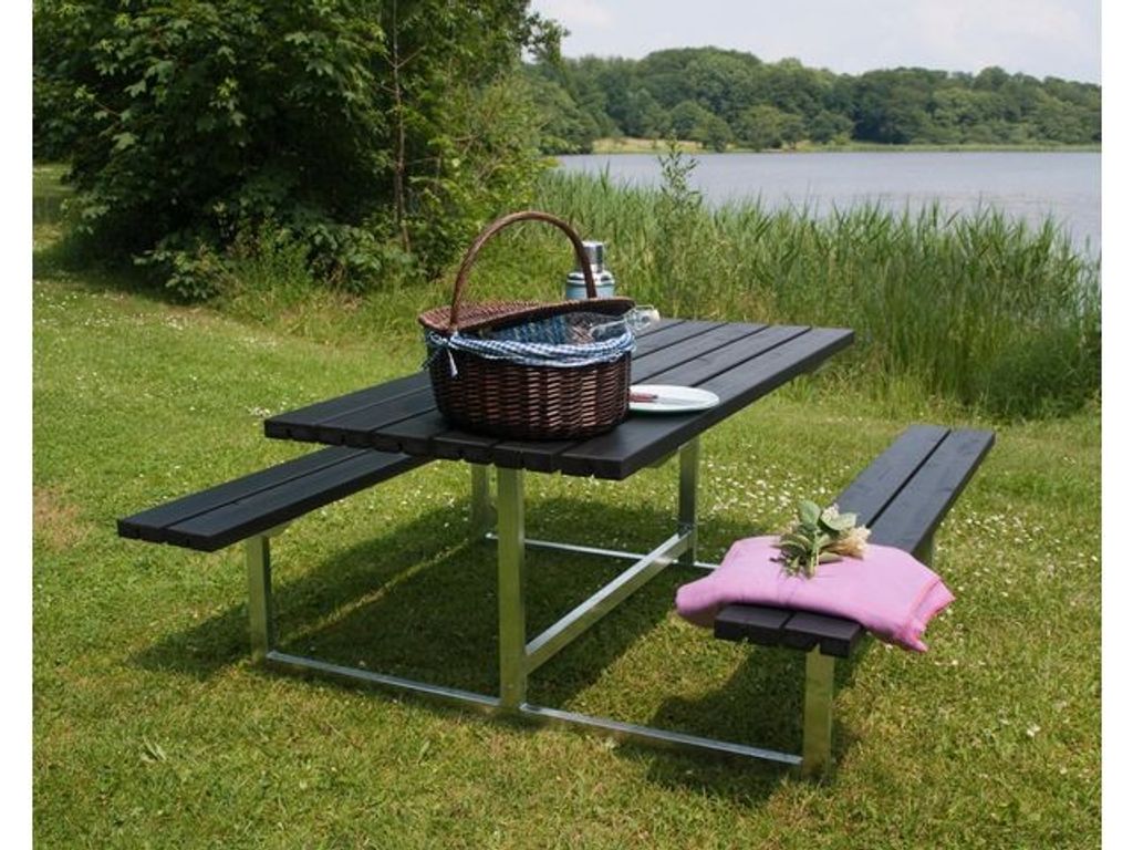 Ett klassiskt bänkset med bord och bänkar som är perfekt för det stora evenemanget, i parken, på festivalen eller i trädgården. Med denna tidlösa och rustika design sitter du både snyggt och stabilt! - Bredd: 160 cm - Höjd: 73/45 cm - Längd: 177 cm - Färg: Svart RAL 9005 - Material: Barrträ - Yta: Fungicidbehandlad och grundmålad - Design: PLUS A/S - Vikt: 63,00 kg