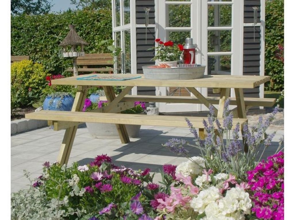 Ett klassiskt bänkset med bord och bänkar som är perfekt för det stora evenemanget, i parken, på festivalen eller i trädgården. Med denna tidlösa och rustika design sitter du både snyggt och stabilt! - Bredd: 155 cm - Höjd: 71/45 cm - Längd: 177 cm - Färg: Tryckimpregnerad - Material: Barrträ - Yta: Tryckimpregnerad klass A/B - Vikt: 62,00 kg