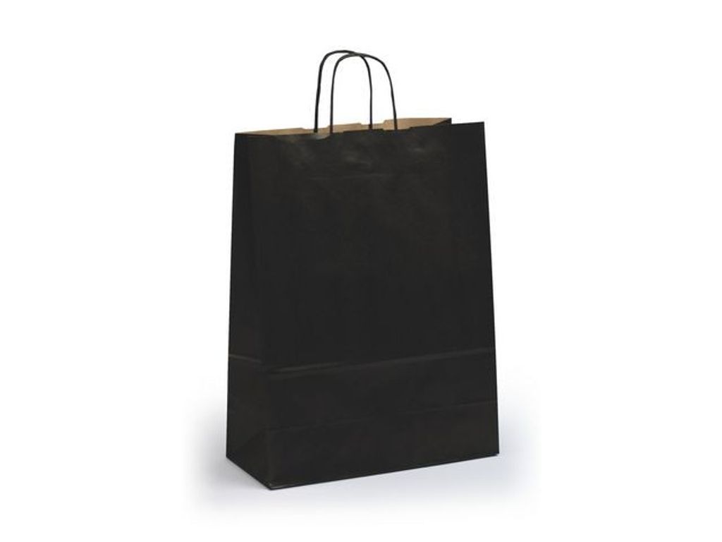 Beskrivning av Bärkasse Medium Svart 150/fp Bärkasse som finns i flera olika färger och storlekar. Fungerar även som presentpåse. Högkvalitativ papperskasse med handtag av tvinnat papper och förstärkt botten. - Mått: 32x14x42cm - Färg: Svart