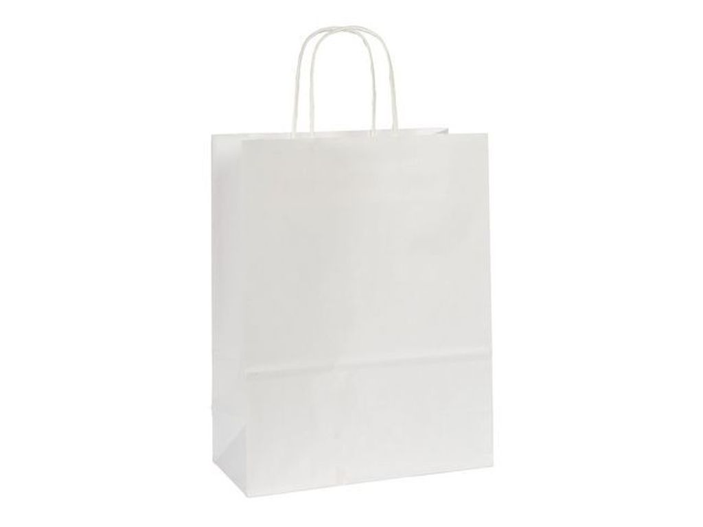 Beskrivning av Bärkasse Small Vit 150/fp Kvalitativ pappersbärkasse som är perfekt att handla i eller varför inte som inslagningsalternativ? Högkvalitativ papperskasse med handtag av tvinnat papper och förstärkt botten. - Mått: 24x11x31cm - Färg: Vit