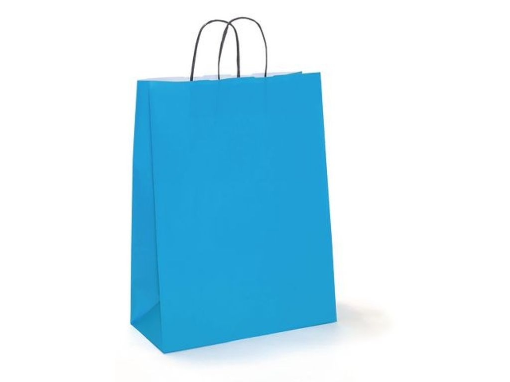 Beskrivning av Bärkasse X-Small Blå 250/fp Bärkasse som finns i flera olika färger och storlekar. Fungerar även som presentpåse. Högkvalitativ papperskasse med handtag av tvinnat papper och förstärkt botten. - Mått: 19x8x21cm - Färg: Blå