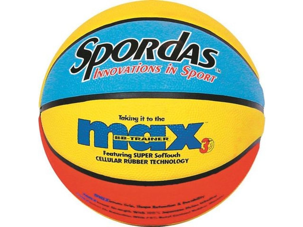 Spordas Max Basketboll är 25 % lättare än en vanlig basketboll och underlättar träningsövningar och bollhantering bland ungdomar. De tre färgerna förbättrar bollens synlighet. - Nivå: träning och skolbruk. - Övningsplats: inomhus - Storlek 5 - Material: gummi. - PVC-fri