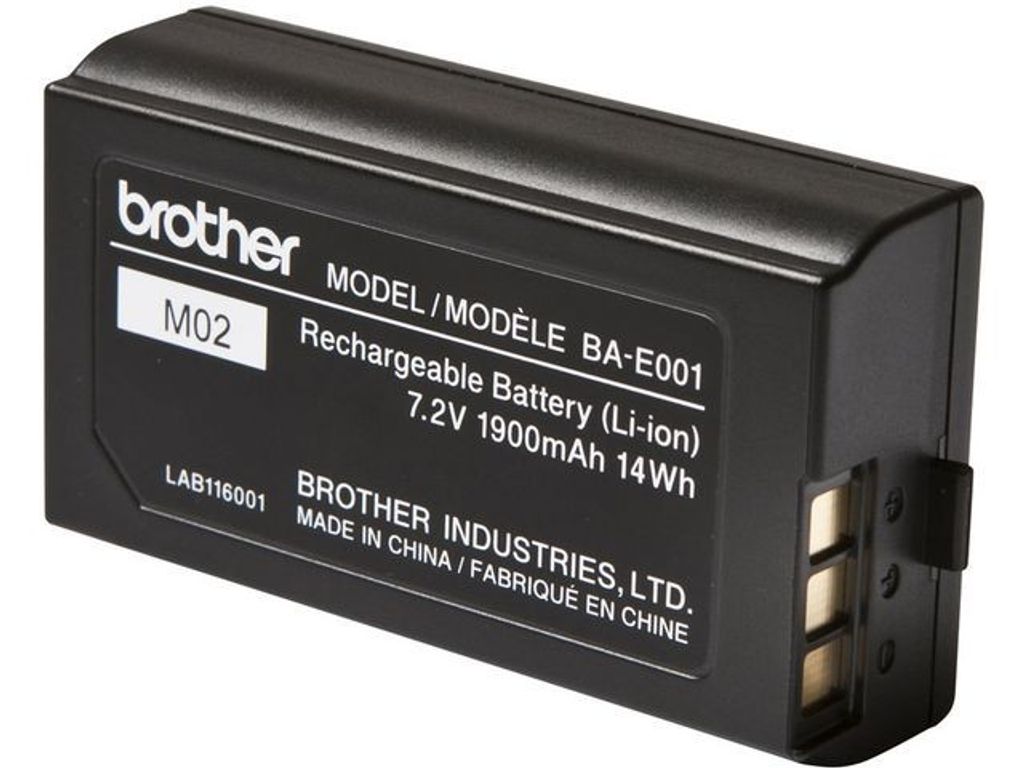 Fungerar med ett urval av Brother P-touch-märkmaskiner Brother BA-E001 Lithium-Ion laddningsbart batteri. - Batteriteknik: Litium-Ion (Li-Ion) - Batterikapacitet: 1900mAh - Batterikapacitet: 14Wh - Batterispänning: 7,2V - Passar till: Brother P-Touch PT-750TDI, PT-E300, PT-E300VP, PT-E500, PT-E500VP, PT-E550W, PT-E550WSP, PT-E550WVP, PT-H300, PT-H300LI, PT-H500, PT-H500LI, PT-H75, PT-H75S, PT-P750W, P-Touch EDGE PT-P750WVP - Vikt: 0,3 kg