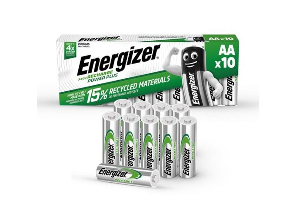 Energizers laddningsbara batterier är det idealiska sättet att spara tid och pengar, med möjlighet att återanvända battericellerna. Få aldrig slut på kraft med våra stora paket med 10 förladdade batterier. Den idealiska lösningen för proffs, tack vare en återförslutningsbar förpackning gjord av 100 % återvinningsbar kartong. Lätta att lagra och förvara, perfekta för batteriförrådet och behåller laddningen i upp till 1 månad när de inte används. Energizer Accu Recharge Power Plus AA-batterierna är utformade för att kunna ge kompromisslös prestanda så att du kan fortsätta jobba även när du använder enheter eller arbetsredskap med hög energiförbrukning. Vid normal användning kan uppladdningsbara batterier från Energizer laddas om hundratals gånger och håller i upp till fem år. - Levereras förladdade - Tillverkad med 15% återvunnet material - Kan laddas 100-tals gånger - Presterar i temperaturer från -18°C till 55°C - Batterikapacitet 2000 mAh - Svanen: Licensnummer 30300012