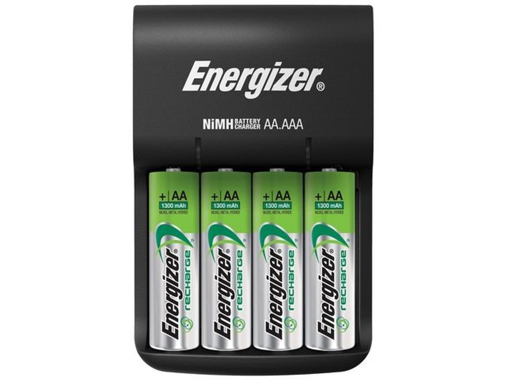 Den prisvärda Energizer-laddaren laddar upp 2 eller 4 AA eller AAA NiMH-batterier på bara 5 timmar och är perfekt på resan så att du aldrig får slut på ström. Laddaren Energizer Value laddar 2 eller 4 AA- eller AAA-batterier samtidigt på bara 5 timmar. Identifiera enkelt om batterierna fortfarande laddas eller är redo att användas med de inbyggda LED-indikatorerna. Komplett med automatisk säkerhetsavstängning när laddningen är klar. Utvikbar kontakt för prydlig förvaring. Levereras med 4 AA 1 300 mAh-batterier. - Laddningstid: 8 timmar - Laddar batterityperna: AA/AAA (2) eller (4) - Skydd mot omvänd polaritet - Batterikapacitet 1300 mAh -