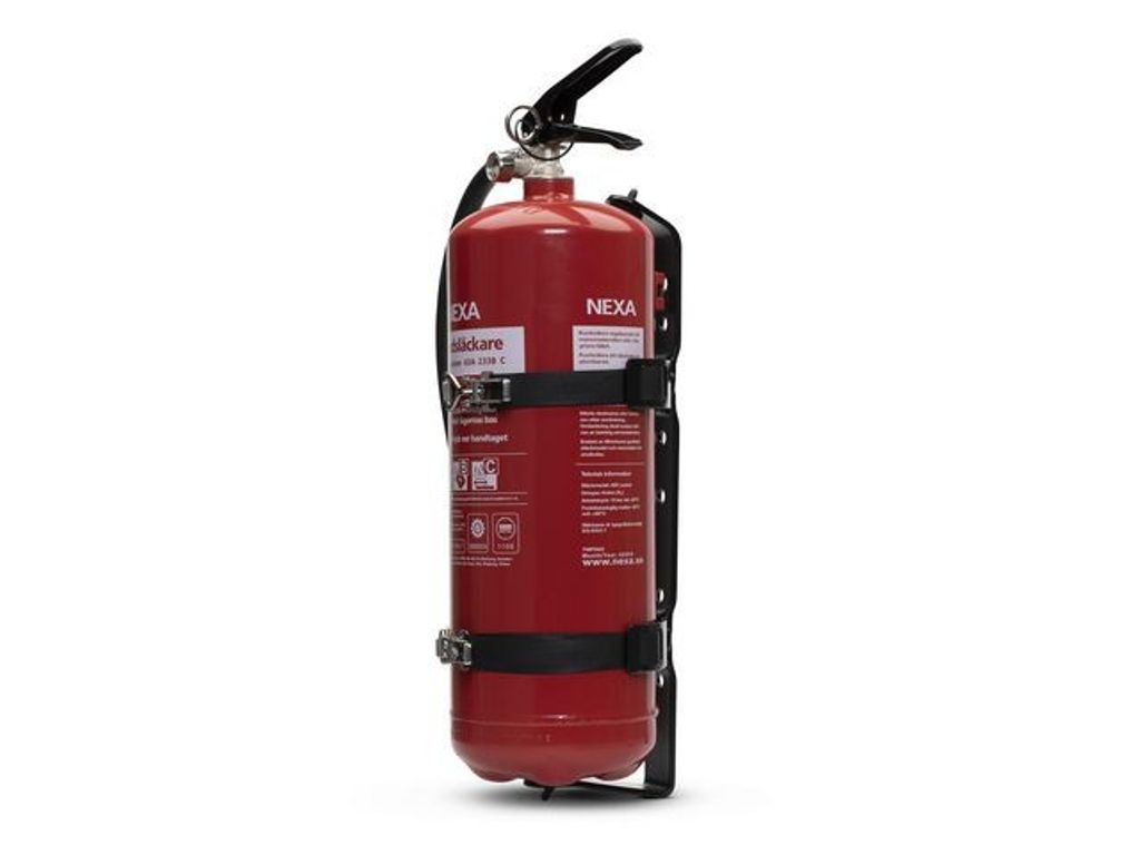 Beskrivning av Bilfäste NEXA till 6 kg pulversläckare Hållare till pulversläckare. Perfekt för bilen, husvagnen eller liknande. Passar flaskor på 6kg.