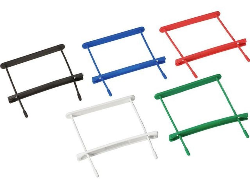 Arkivera papper på ett smidigt sätt. Med dessa fästanordningar i plast kan du säkert arkivera papper på ett problemfritt, bekvämt sätt. Dessa fästanordningar har en bas med skena och en mekanism som tillsammans ger en idiotsäker metod för att säkert sätta fast dokument. Du kan använda dessa fästanordningar för att modifiera vanliga mappar och undvika att papper faller ut. Fästanordningarna är användbara när flera mappar måste organiseras och arkiveras noggrant. - Har en bas med skena och mekanism - Kan användas för att modifiera vanliga mappar - Lämpliga för användning på kontor eller i hemmet - Antal: 100 - Material: Plast - Färg: Vit - Mått: 76 mm