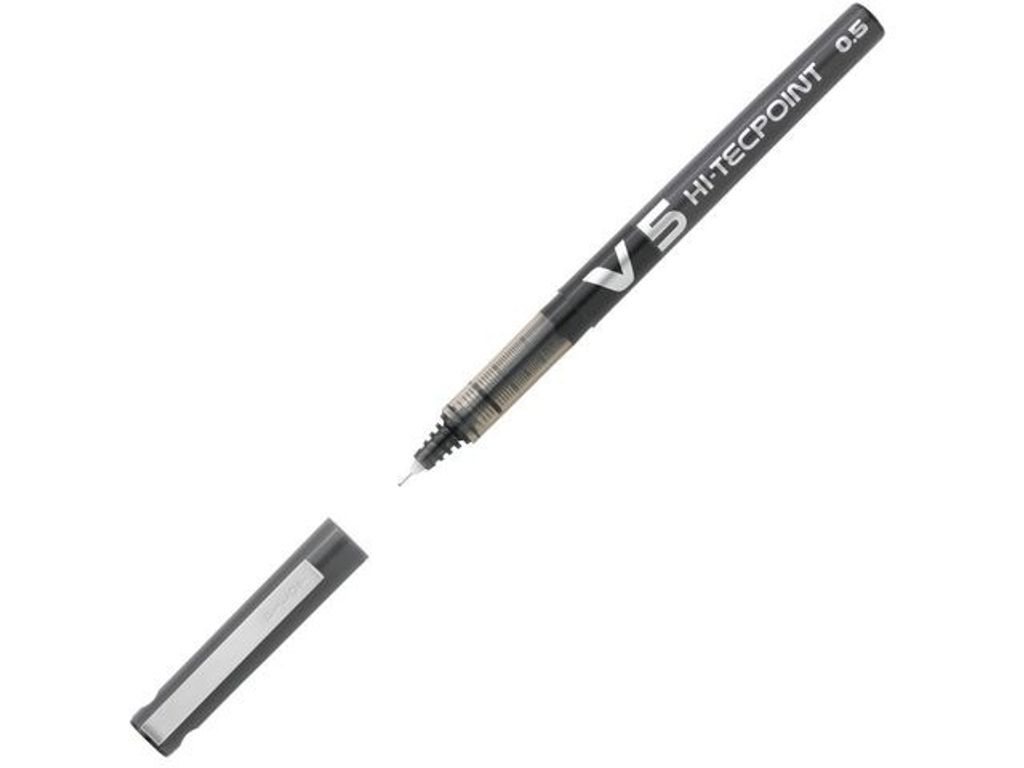 Pennan Pilot Hi-Tecpoint V5 är en tunn rollerballpenna med en bläckregulator som ger ett jämnt bläckflöde. Denna rollerballpenna med flytande bläck har en nålformad spets i rostfritt stål som ger lätta, mjuka och exakta penndrag. Dess hållbara kula i hårdmetall, med skåror för extra stöd och stadig vridning, behåller sin form länge. Denna rollerballpenna har en unik V-systemmekanism som reglerar bläckflödet, och ser till att det är jämnt och fast, samt ett litet fönster som visar bläcknivån. Pennan levereras komplett med kork,som skyddar pennan,och en fickklämma som gör den praktisk att använda. - Huv - Spetsbredd: 0,5 mm - Textfärg: Svart - Färg pennkropp: Svart - Dokumentäkta bläck enligt ISO 14145