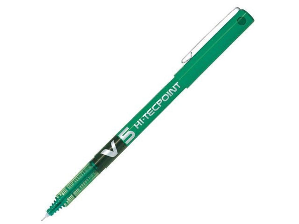 Pennan Hi-Tecpoint V5 är en extra tunn rollerballpenna med en bläckregulator som ger ett jämnt bläckflöde. Hi-Tecpoint V5 har en nålformad spets i rostfritt stål som ger mjuka penndrag utan ansträngning. Pennan har en extra tunn spets på 0,5 mm, vilket är perfekt för uppgifter som kräver stor noggrannhet. Dess hållbara kula i hårdmetall, med skåror för extra stöd och stadig vridning, behåller sin form länge. Denna rollerballpenna med flytande bläck har en unik V-systemmekanism som reglerar bläckflödet och ser till att det är jämnt och fast, samt ett litet fönster som visar bläcknivån. Pennan finns i en mängd olika färger och levereras komplett med kork som skyddar den och en fickklämma som gör den praktisk att använda. - Nålformad spets av rostfritt stål - Extra tunn spets: 0,5 mm - Noggrannhet och precision - Rollerballpenna med flytande bläck - Kula av hårdmetall - Försedd med bläckregulator för fast bläckflöde - Litet fönster som visar bläcknivån - Färg: Grön