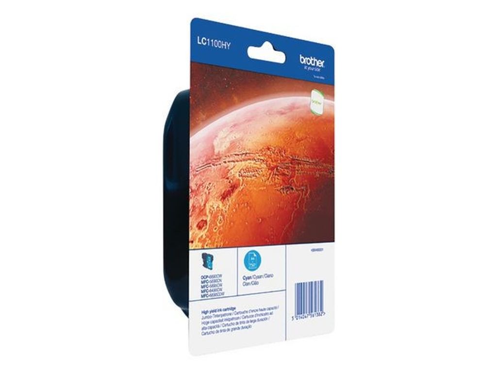 Få bästa möjliga utskriftskvalitet, skarp text och livfull grafik med Brother LC1100HYC cyan bläckpatron. Brother LC1100HYC cyan bläckpatron med hög kapacitet ger lysande, tydliga resultat för utskrifter av hög kvalitet. Denna kassett täcker i princip alla utskriftsbehov, från rapporter och diagram till häften och presentationer. Bläcket som är utformat för optimal användning i olika Brother-maskiner är kladdfritt och färgbeständigt, vilket ger hållbara utskrifter. Den här prisvärda bläckpatronen ger en kapacitet på upp till 750 sidor. - Färg: Cyan - Kapacitet: Upp till 750 A4-sidor - Enkelt att installera och byta - Kladdfri och färgbeständig - Fantastiskt värde - Ger text och bilder med utmärkt kvalitet - Passar till: Brother DCP-6690CW, MFC-5890CN, MFC-5895CW, MFC-6490CW, MFC-6890CDW - Brother Justio MFC-5890CN