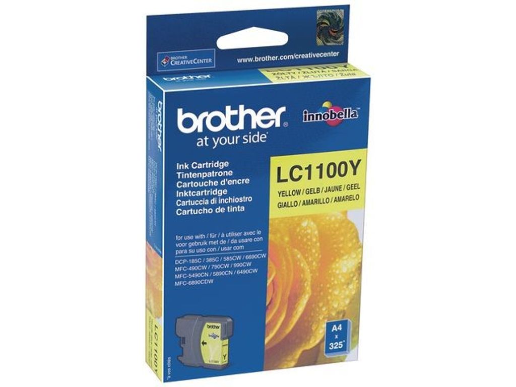 Få bästa möjliga utskriftskvalitet, skarp text och livfull grafik med Brother LC1100Y gul bläckpatron. Brother LC1100Y gul bläckpatron ger lysande, tydliga resultat för utskrifter av hög kvalitet. Denna kassett täcker i princip alla utskriftsbehov, från rapporter och diagram till häften och presentationer. Bläcket som är utformat för optimal användning i olika Brother-maskiner är kladdfritt och färgbeständigt, vilket ger hållbara utskrifter. Den här gula bläckpatronen ger en kapacitet på upp till 325 sidor. - Färg: Gul - Kapacitet: Upp till 325 A4-sidor - Enkelt att installera och byta - Kladdfri och färgbeständig - Ger text och bilder med utmärkt kvalitet - Kapacitet: 325 sidor - Passar till: DCP-383C, DCP-385C, DCP-387C, DCP-395CN, CP-585CW, DCP-J715W, DCP-6690CW, MFC-490CW, MFC-J615W, MFC-790CW, MFC-795CW, MFC-990CW, MFC-5490CN, MFC-5890CN, MFC-5895CW, MFC-6490CW, MFC-6890CDW