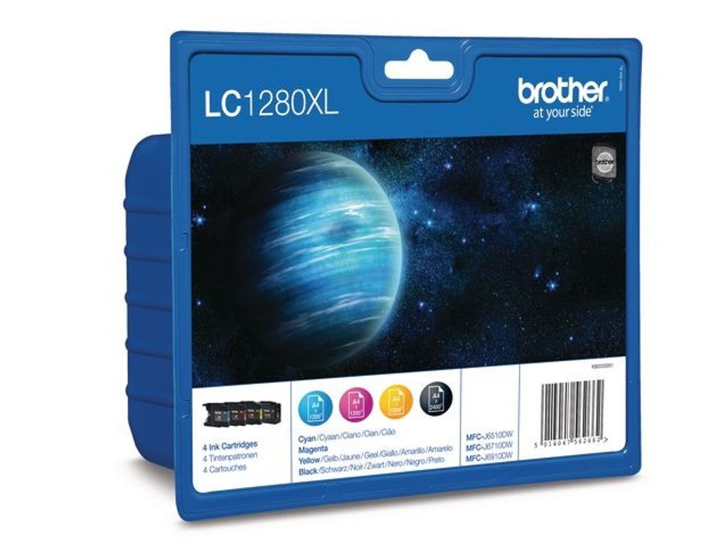 Bläckpatronen Brother 1280XL har hög kapacitet, vilket gör att du kan skriva ut fler sidor utan att bläcket tar slut. Bläckpatronen Brother 1280XL är innovativ och exakt och högkvalitativa utskrifter. Denna multiförpackning har hög kapacitet, vilket gör den till ett perfekt val för större utskriftsvolymer. Den innehåller svart, cyanfärgat, magentafärgat och gult bläck. - Färg: Svart, cyan, magenta, gul - Kapacitet på 2 400 sidor - Sidkapacitetstäckning: ISO/IEC 24711 - Multiförpackning - Hög kapacitet - Kompatibel med: MFC-5910DW, MFC-J6510DW, MFC-J6710DW, MFC-J6910DW