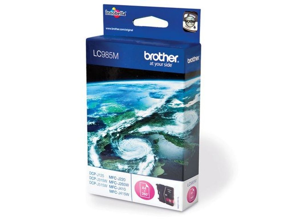 Få bästa möjliga utskriftskvalitet, skarp text och livfull grafik med Brother LC985M magenta bläckpatron. Brother LC985M magenta bläckpatron ger lysande, tydliga resultat för utskrifter av hög kvalitet. Bläcket som är utformat för optimal användning i olika Brother-maskiner är kladdfritt och färgbeständigt, vilket ger hållbara utskrifter. Den här magentafärgade bläckpatronen ger en kapacitet på upp till 480 sidor. - Färg: Magenta - Kapacitet: Upp till 480 A4-sidor - Högkvalitativt skrivarbläck - Enkelt att installera och byta - Kladdfri och färgbeständig - Ger text och bilder med utmärkt kvalitet - Kapacitet: 260 sidor - Passar till: DCP-J125, DCP-J140W, DCP-J315W, DCP-J515W, MFC-J220, MFC-J265W, MFC-J410, MFC-J415W