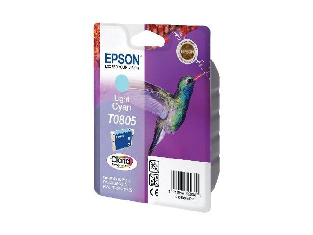 Epson T0805-bläck i ljus cyan är ett ekonomiskt val om du vill ha dokument med djup cyan och foton av labbkvalitet. Epson T0805 ljus cyan bläckpatron med SmartValve-styrning som släpper ut bläcket på ett jämnt sätt skapar konsekvent högklassiga utskrifter. Den här bläckpatronen är en del av Claria Home Ink-serien som ger utskrifter och foton av hög kvalitet till ett överkomligt pris. Spara pengar genom att ersätta endast den färg som du behöver. Bläcket fungerar bäst i kombination med Epson bläckstråleskrivare för optimala resultat och utskrifter som håller längre. - Färg: Ljus cyan - Kapacitet: Upp till 440 A4-sidor - Kapacitet (liter): 7,4 ml - Epson Claria Home-bläck - Dokument med djup svärta och utmärkta fotoutskrifter - Se kompatibilitetstabellen för lämpliga maskiner