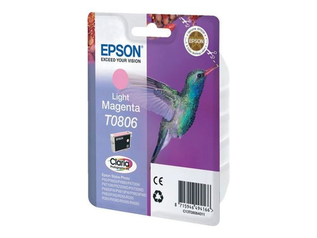 Epson T0806 ljus magenta bläckpatron kombinerar teknik och mångsidighet för att ge detaljrika bilder. Epson T0806 ljus magenta bläckpatron med SmartValve-styrning som släpper ut bläcket på ett jämnt sätt skapar ständigt högklassiga utskrifter. Originalbläckpatroner från Epson är idealiska för Epson-skrivare. Dessa mycket tillförlitliga bläckpatroner garanterar en lång livslängd och problemfri utskrift, vilket i kombination med deras mångsidighet gör dem idealiska för utskrift av dokument och andra medier. Bläcket från Epson är snabbtorkande för att ge en kladdfri yta. - Färg: Ljus magenta - Kapacitet: Upp till 450 A4-sidor - Kapacitet (liter): 7,4 ml - Utskrifter av hög kvalitet - Mycket prisvärda - Se kompatibilitetstabellen för lämpliga maskiner